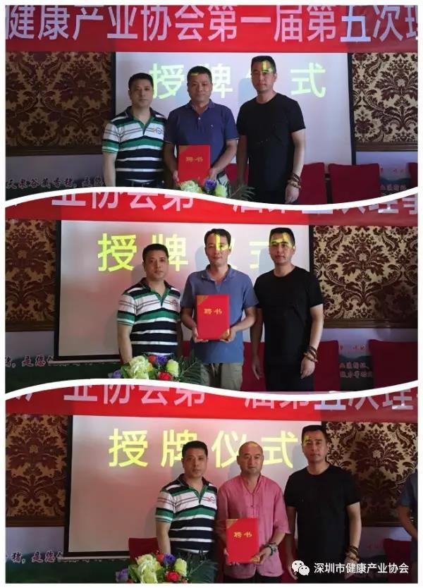 隨后,協(xié)會為會員單位和個人會員:深圳市明明健康管理有限責任公司,廣州市啟鵬教育咨詢服務有限公司,深圳天際云科技有限公司等舉行了授牌儀式,并頒發(fā)協(xié)會專家委員會聘書,正式聘請李少軍先生,李建均先生,馮統(tǒng)海先生為深圳市健康產業(yè)協(xié)會專業(yè)委員會副主任。