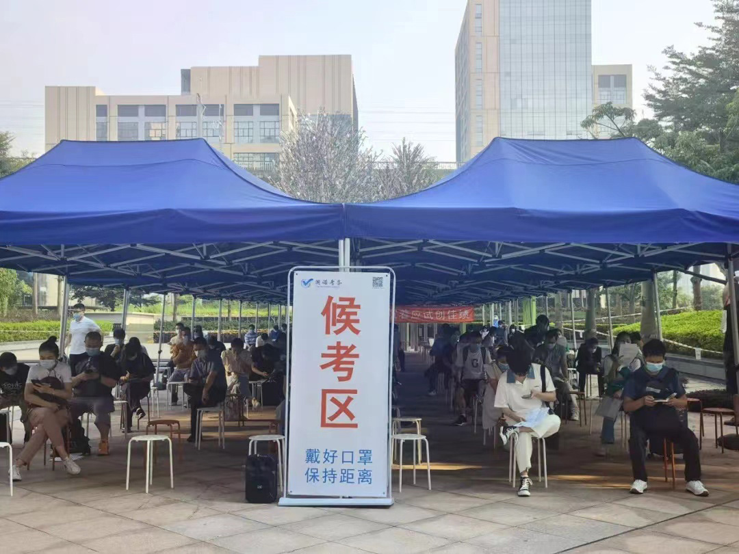 考試當天,所有考務人員提前60分鐘到達考場,在主考人員組織召開考前會議并再次明確考務流程和各崗位職責后各就各位。為嚴格落實國家防疫要求,考場入口首先在考場外為考生測量體溫,核驗健康碼、行程碼、綠碼,24小時核酸陰性證明方可進入考場。考室入口通過核驗考生準考證、身份證、個人承諾書三碼合一確保本人參加考試。