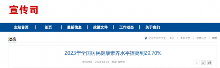 2023年全國居民健康素養水平提高到29.70%,比2022年提高1.92個百分點