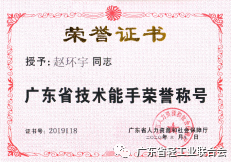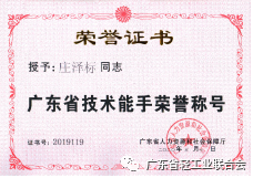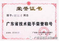 熱烈祝賀2019年廣東省職業技能競賽優勝選手獲得“廣東省技術能手”稱號