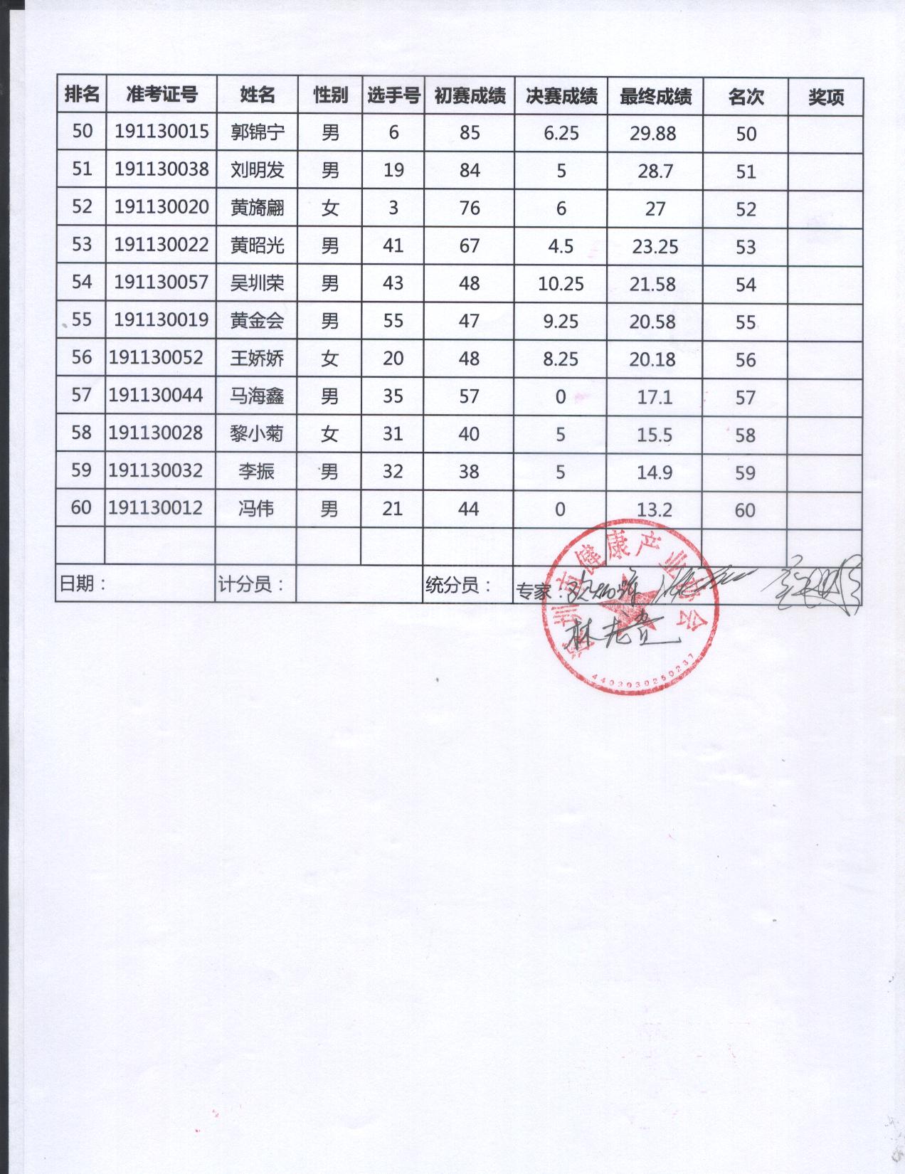 2019年廣東省白酒品酒師大賽決賽成績公布表