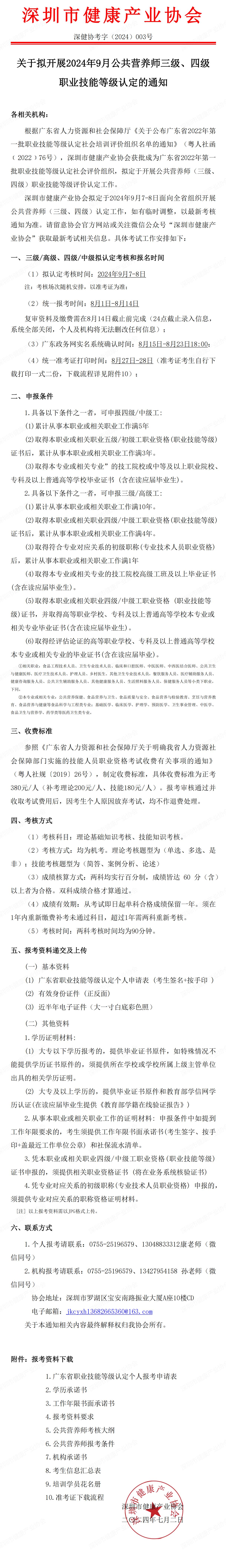 關(guān)于擬開展2024年9月公共營養(yǎng)師三級、四級職業(yè)技能等級認(rèn)定工作的通知