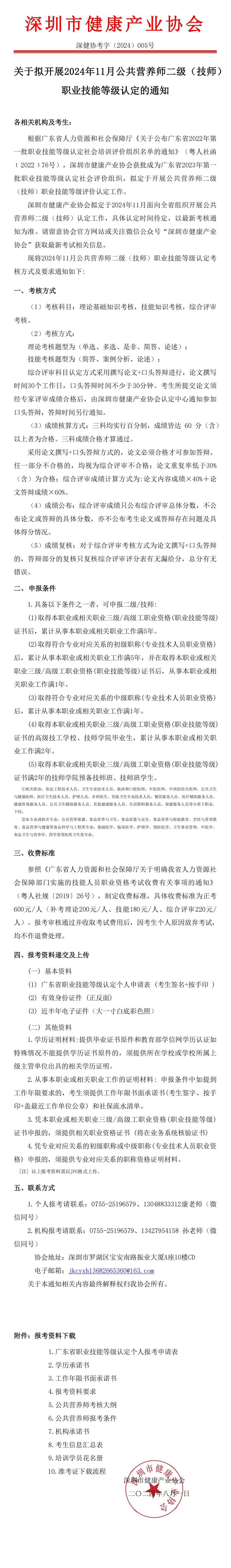 關于擬開展2024年11月公共營養師二級(技師)職業技能等級認定的通知