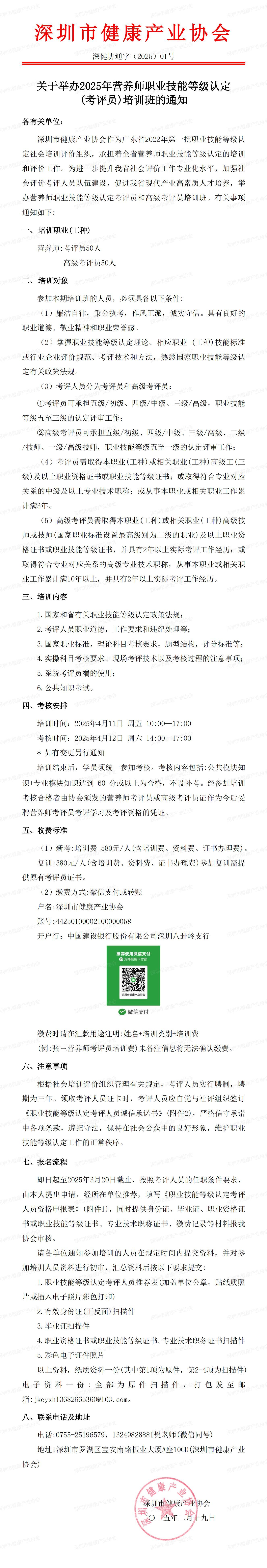 2025年營養師(考評員) 培訓班舉辦通知
